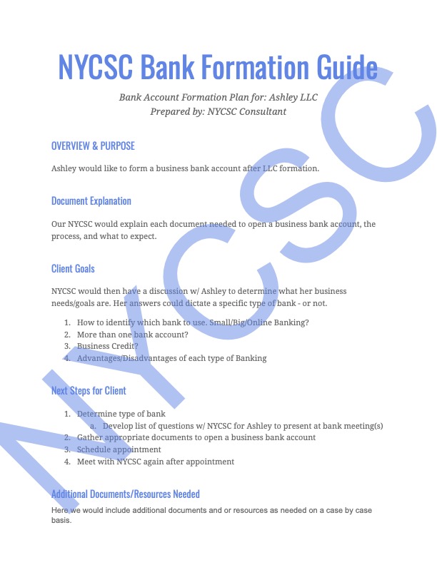Each client has their own specific needs. NYCSC will create a step-by-step plan to ensure you are on the right path for your business goals.